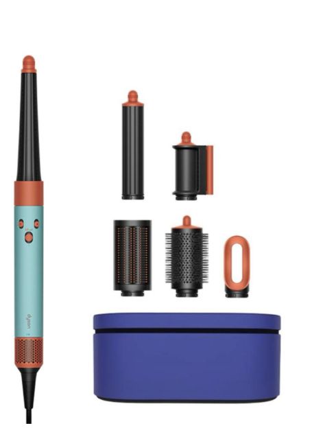 Styler, Airwrap cone nozzle, Airwrap 40mm barrel nozzle, soft straightening brush, round volumizing brush, Coanda smoothing nozzle, quick dry nozzle, storage pouch, filter cleaning brush