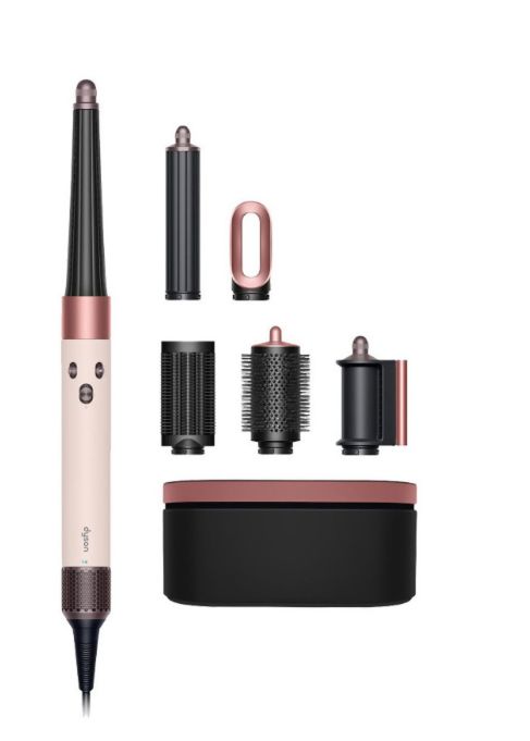 Styler, Airwrap cone nozzle, Airwrap 40mm barrel nozzle, soft straightening brush, round volumizing brush, Coanda smoothing nozzle, quick dry nozzle, storage pouch, filter cleaning brush