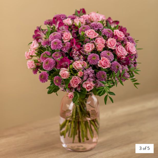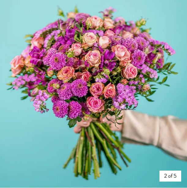 A playful mix of warm peach tones, berry pinks, and lush greens . This bouquet is as sweet as a summer day. Perfect to brighten up any room or make someone’s day a little more magical.